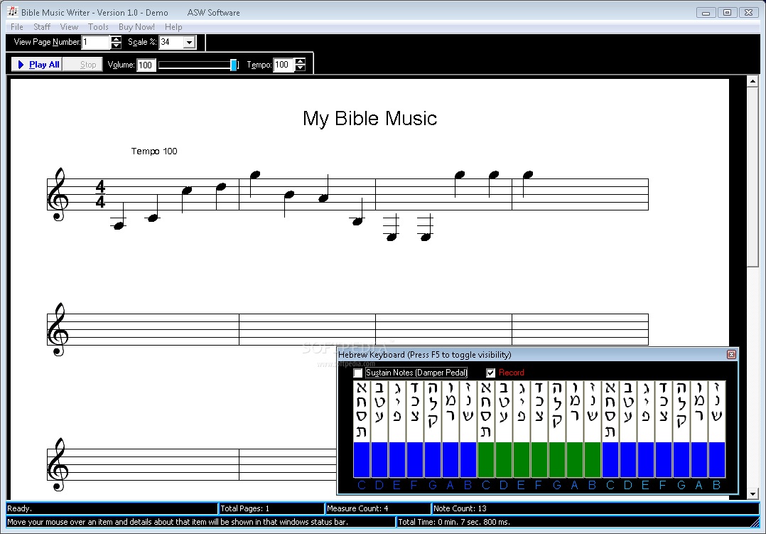 - Quickly and easily convert any selection of the Hebrew text of the Bible to musical tones in quarter notes.
