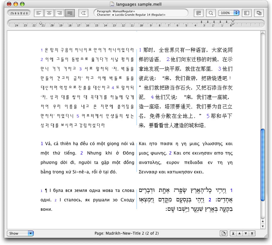 Mellel offers full support for writing in Hebrew, which exceeds anything offered by any other word processor for Mac OS X!