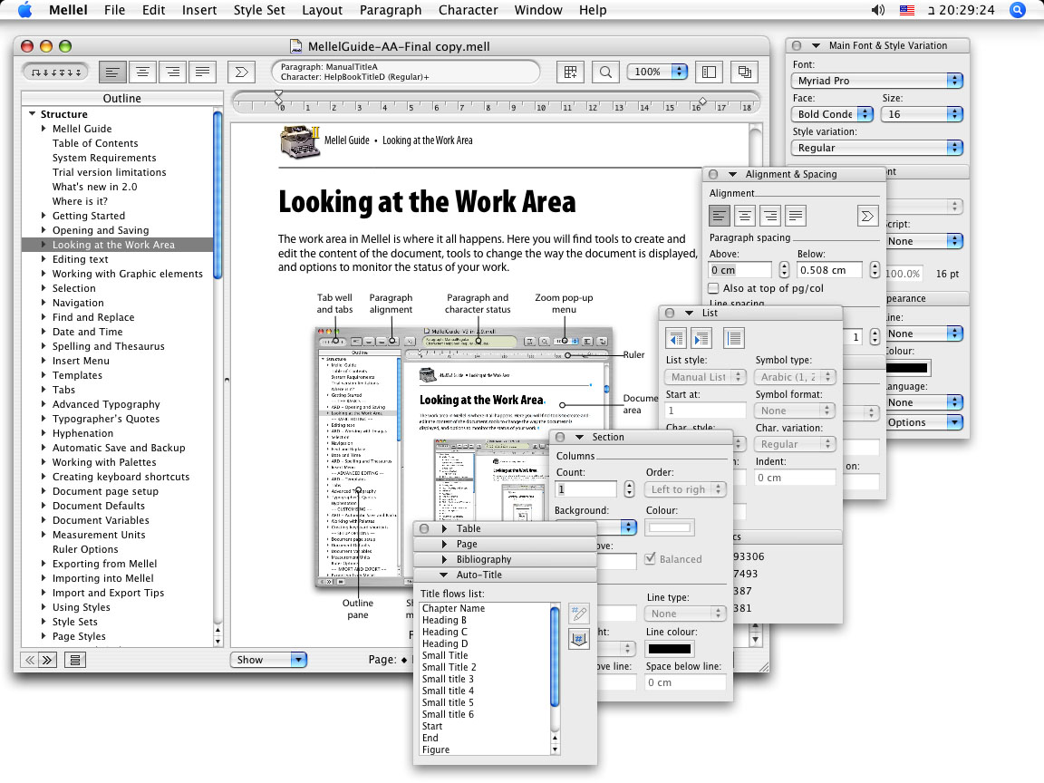 screen shots of Mellel in Use: